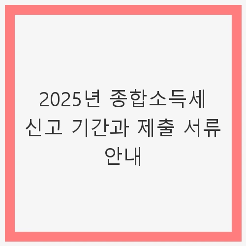 👉2025년 종합소득세 신고 기간과 제출 서류 안내 바로가기1. 2025년 종합소득세 신고 기간